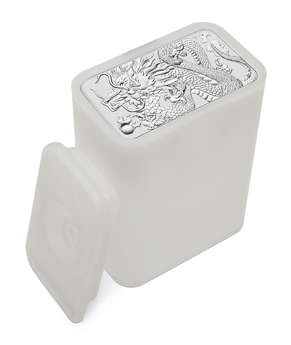 Dies ist die zweite Ausgabe des Rectangular Dragon Motivs als 1 oz Silbermünze der Perth Mint in Australien. Besonders hervorzuheben ist die relativ kleine Auflage von nur 500.000 Stück.